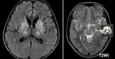 T2/FLAIR: GP, thalamus, midbrain 의 High SI