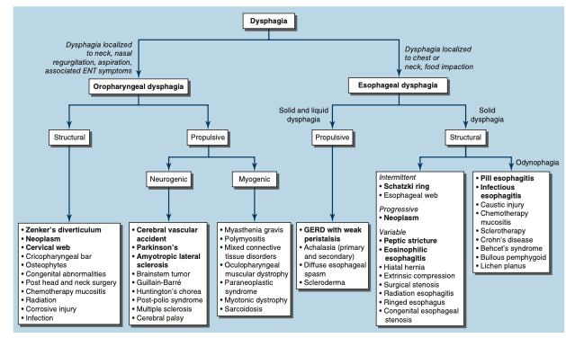 연하곤란 (Dysphagia): 음식물이나 액체가 입에서 인두를 거쳐 식도로 넘어가는 과정에 문제가 발생하는 것