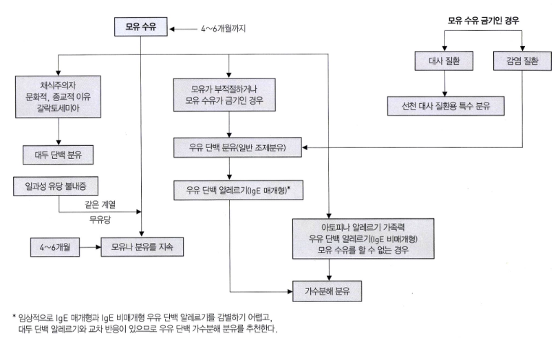 대두 단백 분유 (Soy formula): 우유 단백 알레르기, 유당불내증, 갈락토스혈증(일시적) 시 고려.
