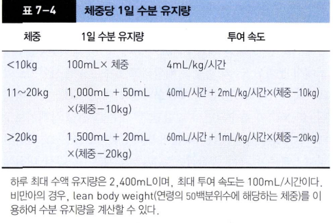 수액량 : (이미 소실한 양 + 1일 유지량) - (phase I에서 투여한 양)
