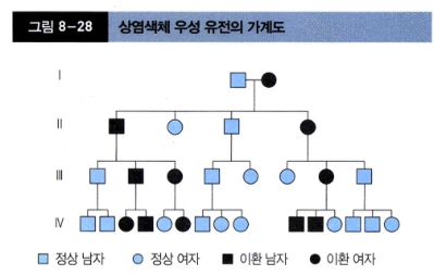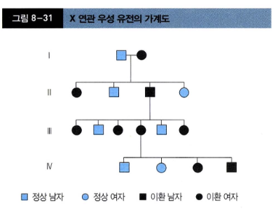 환자인 아버지에서 태어난 딸들은 모두 이환, 아들은 모두 정상