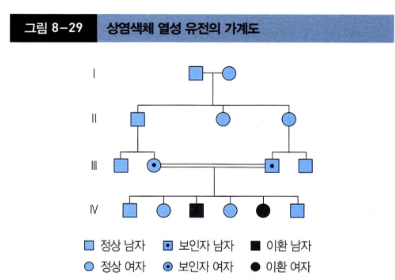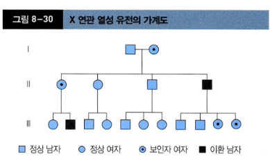 어머니가 보인자인 경우 아들의 50%는 환자가 되고 딸의 50%는 보인자가 됨