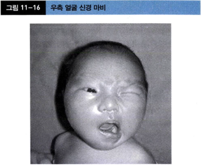 원인: 가장 흔한 단일 말초 신경 손상임. 분만 중 안면 신경(제7 뇌신경)이 산도의 돌출부나 겸자에 의해 압박되어 발생