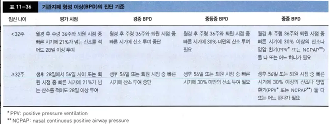 지속적인 산소 요구도: 생후 28일 또는 교정 연령 36주가 지나도 산소 공급이 필요