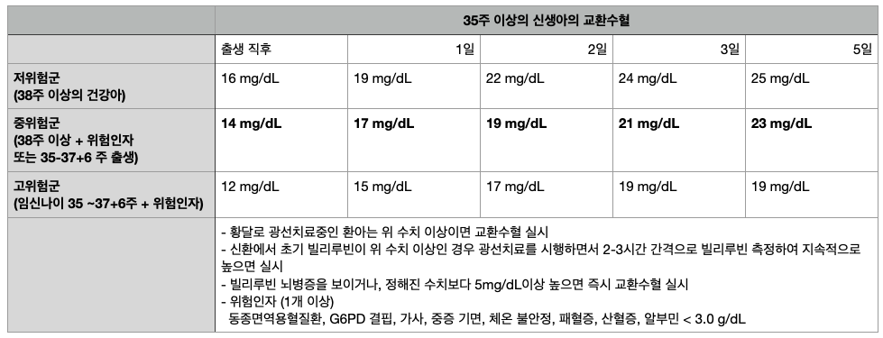 제태연령 35주 이상 신생아의 교환수혈 적응증