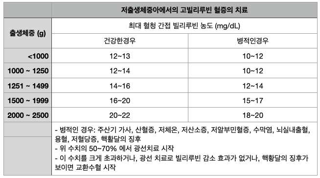 저출생체중아(미숙아)에서의 고빌리루빈 혈증의 치료