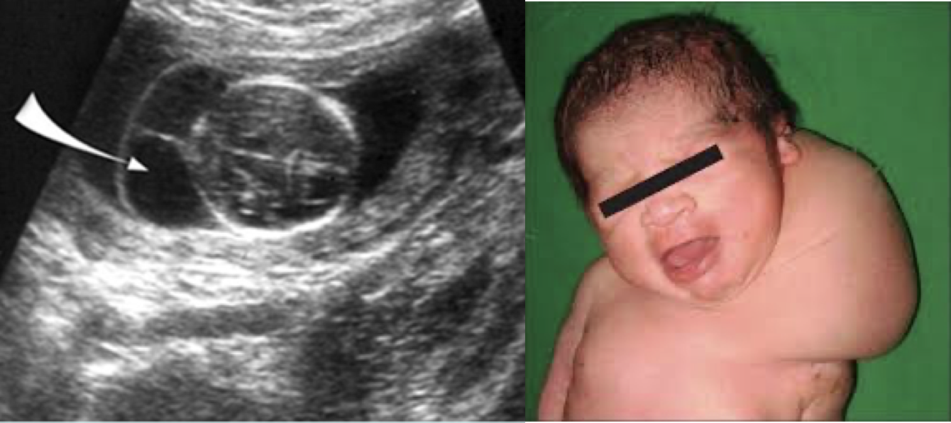 연관 질환: 터너, 다운,누난, 에드워드 증후군 등의 염색체 이상, 태아 수종 (hydrops fetalis)