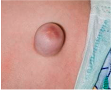 정의: 탯줄의 치유과정 중 기저부에 경한 균 감염이 발생하면서 장액/점액성의 분비물, 작은 크기의 분홍색의 말랑한 육아조직이 돌출
