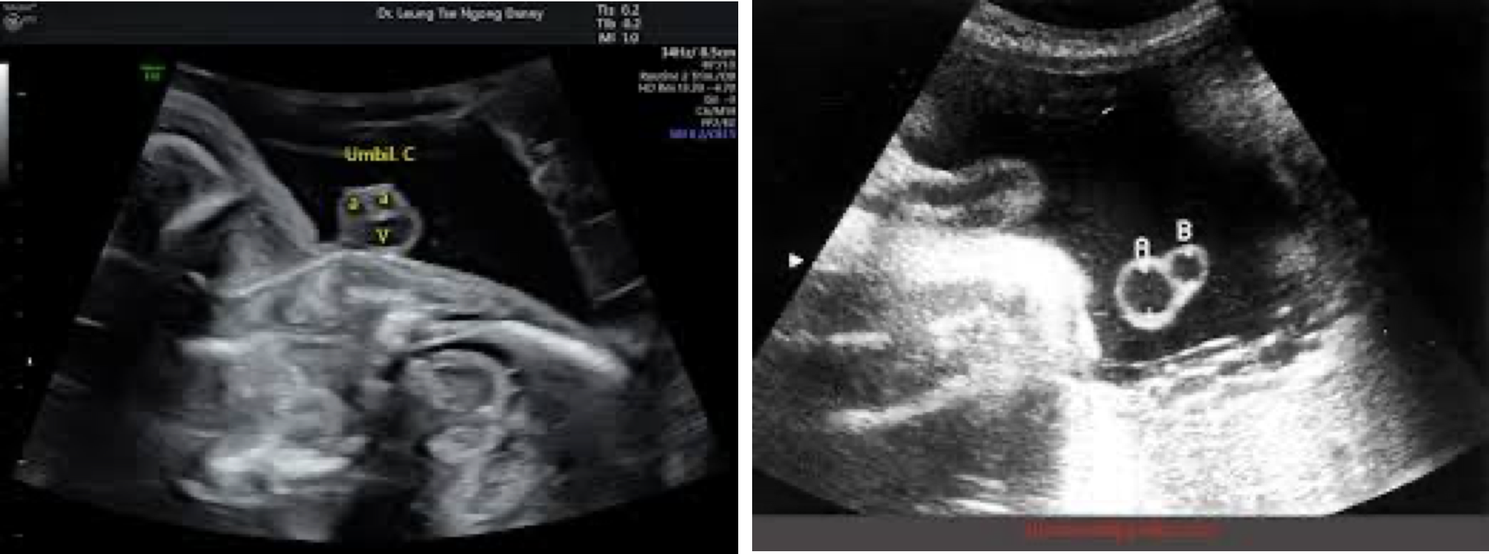 정의: 정상 탯줄(좌, 2동맥 1정맥)과 달리 1개의 제대 동맥 만 존재하는 경우(우).