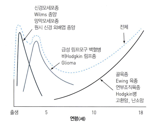 2-5세: ALL, non-Hodgkin lymphoma, glioma