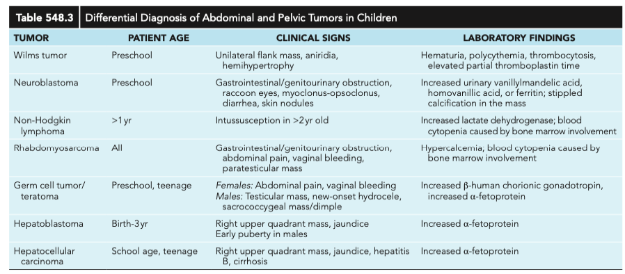 생후 첫 1년: 신경모세포종, Wilm’s tumor, 망막모세포종, 속질모세포종