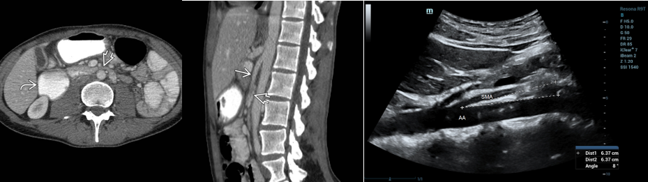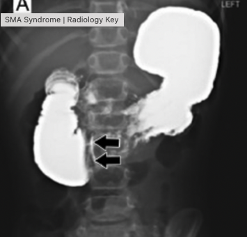 정의: 십이지장 3rd portion이 대동맥과 SMA 사이에 눌려서 발생