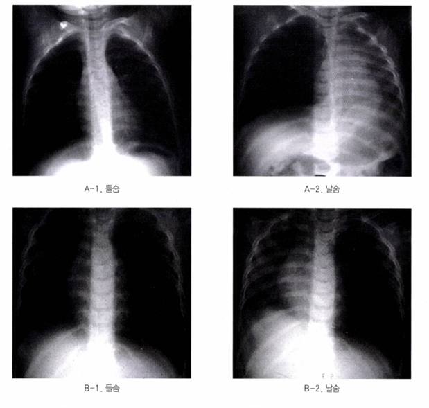 방사선 검사: 들숨 및 날숨 시의 흉부 X선(Chest X-ray)