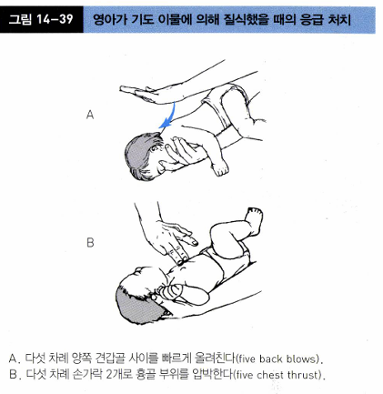 1세 이하 영아: Five back blow and/or five chest thrust method