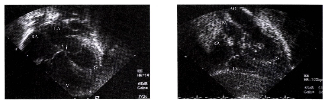심초음파: 4가지 해부학적 이상을 모두 확인하여 확진