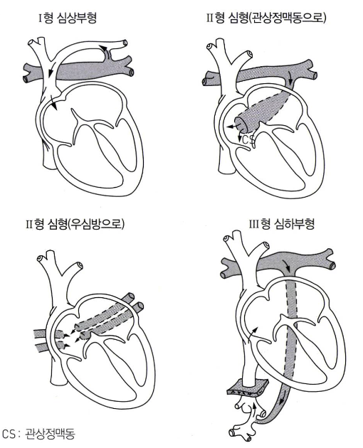 (우심방 → 좌심실 → 폐동맥, 좌심방→우심실→대동맥)