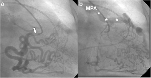 b. 수분 후 조영제가 LCA로 drain 되며 MPA 가 조영되는 소견