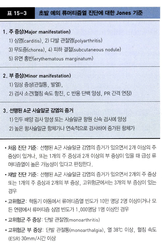심염, 다발 관절염, 피하결절, 유연홍반 (erythema marginatum), 무도증
