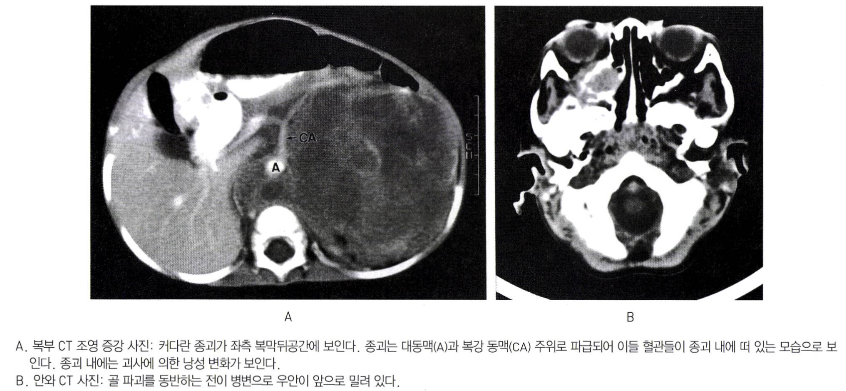 태아기 신경능선 세포가 교감신경절 또는 부신 수질로 분화하는 과정에서 발생한 이상으로 인해 종양이 형성