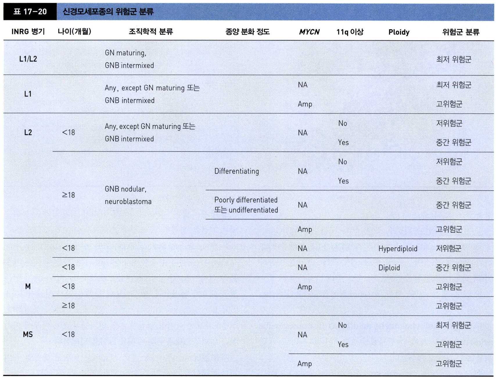 MYCN 원종양유전자(oncogene) 증폭은 가장 중요한 유전적 이상으로, 고위험군 및 불량한 예후와 직결