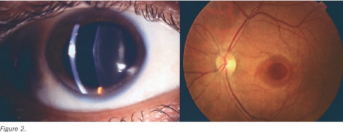 망막 반점(Dot-and-fleck retinopathy): 황반 주변에 흰색 또는 노란색의 점과 반점이 관찰됨. 시력에 직접적인 영향을 주는 경우는 드묾