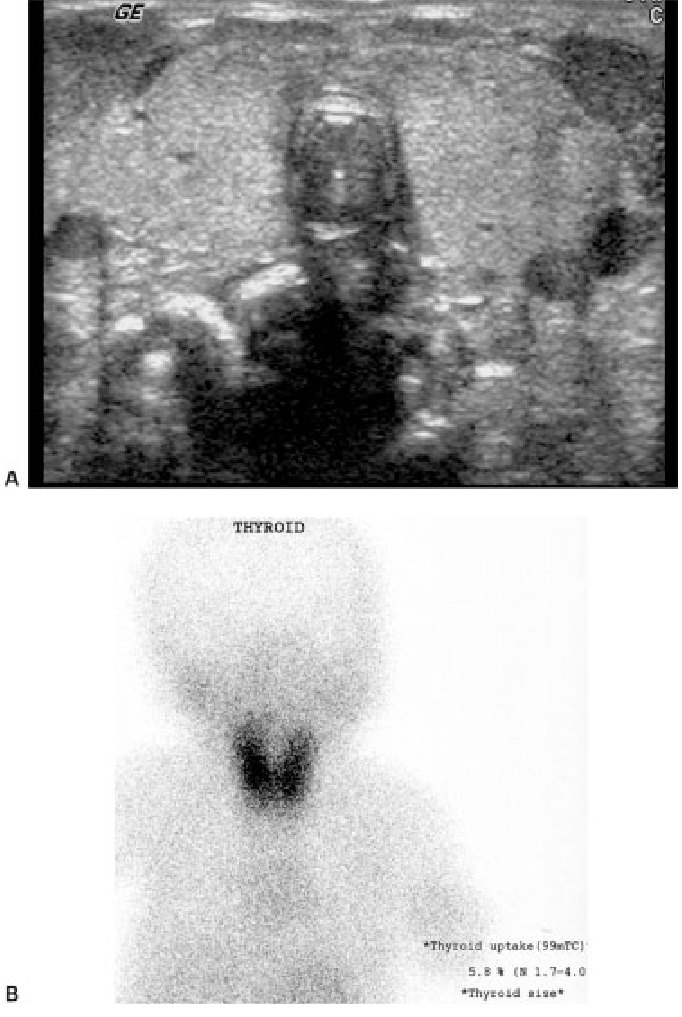 원인 감별을 위한 검사: 갑상샘 스캔, 초음파, 혈청 Tg