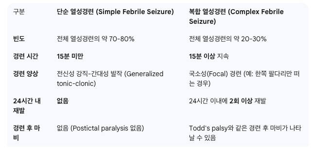 열성경련은 임상 양상에 따라 단순 열성경련과 복합 열성경련으로 분류