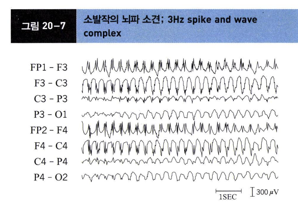 뇌파 (EEG): 특징적인 전반적 3Hz 극서파 복합체