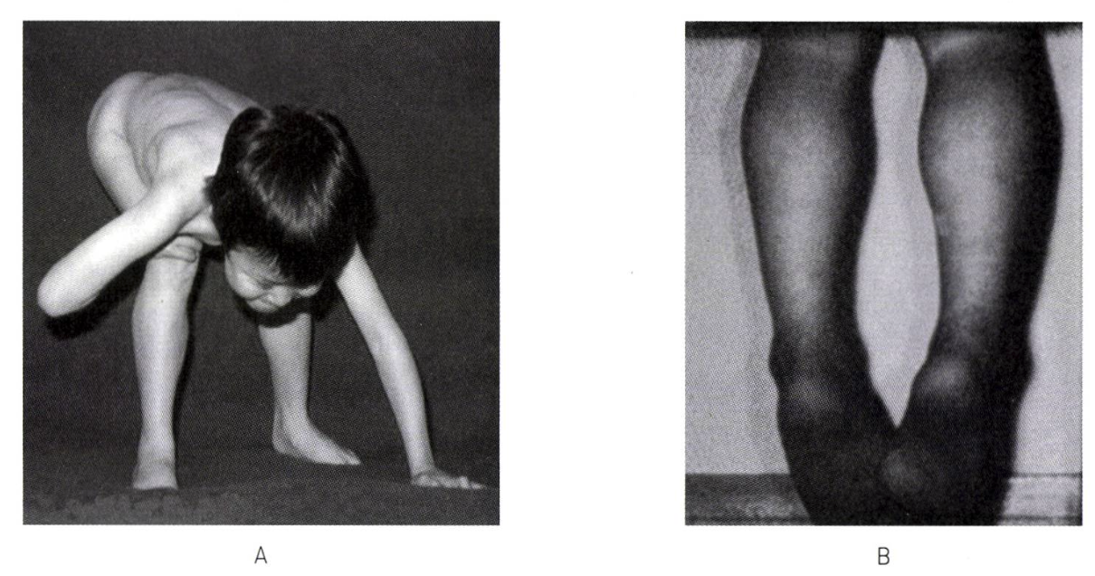 생후 1년 이후 발견: lordotic posture, waddling gait