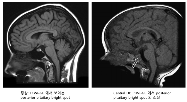 AVP-D(중추성)에서 뇌하수체 후엽의 고신호강도(bright spot) 소실 확인
