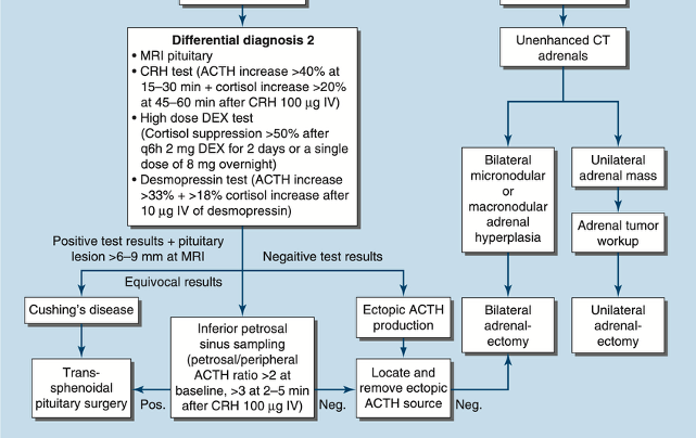 → 검사 음성: ectopic ACTH production → 원인 파악 위해 chest/abdomen CT 고려