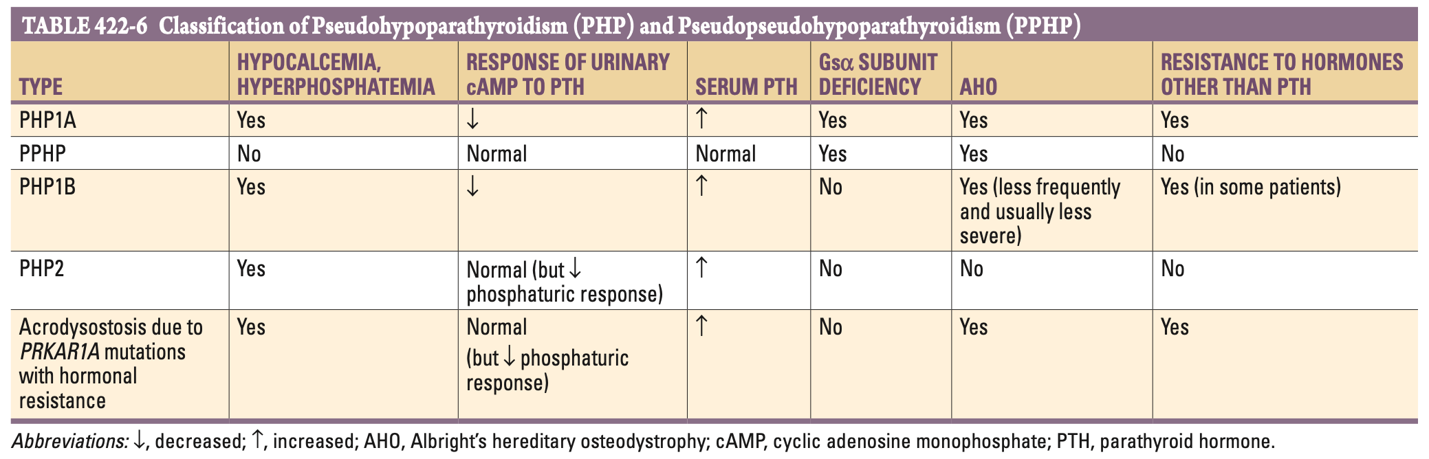 호르몬 저항성 (PHP1a): 신장의 PTH 저항성뿐만 아니라 TSH(갑상샘저하), GHRH(성장호르몬 결핍), 성선자극호르몬 저항성도 동반 가능