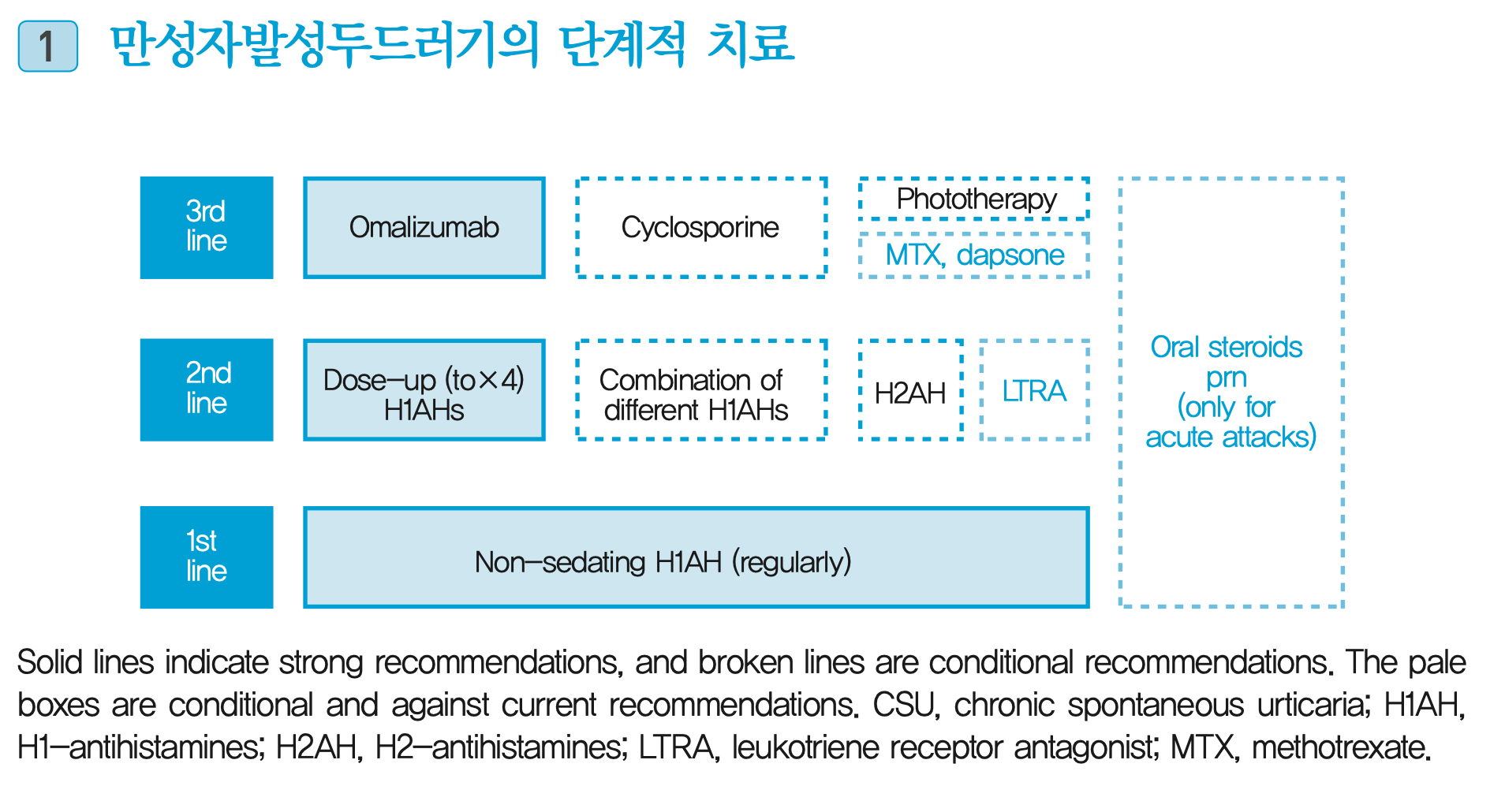 [만성 두드러기 단계별 치료 알고리즘]