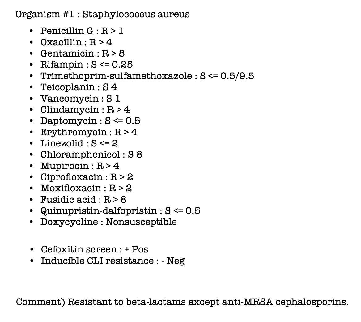 MRSA 에 해당 → Vancomycin 선택