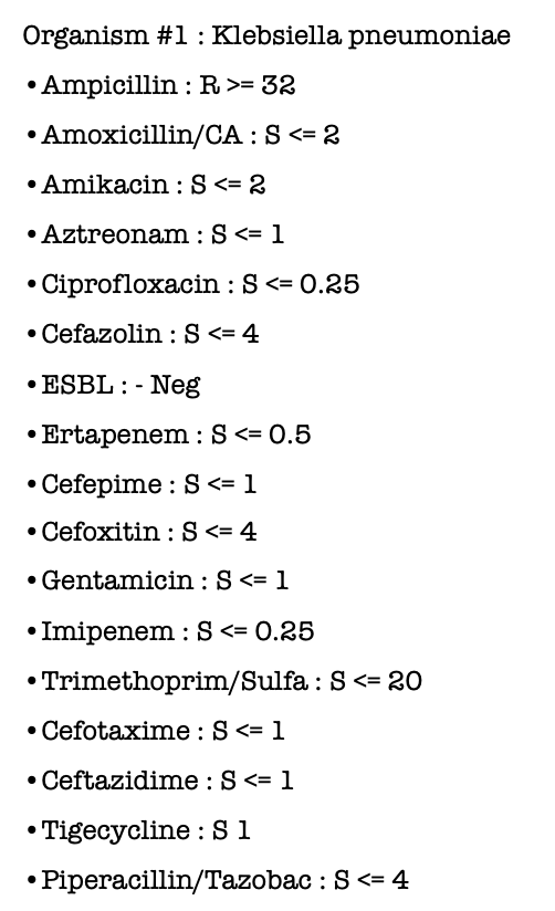Cephalosporin: 감수성 / ESBL negative