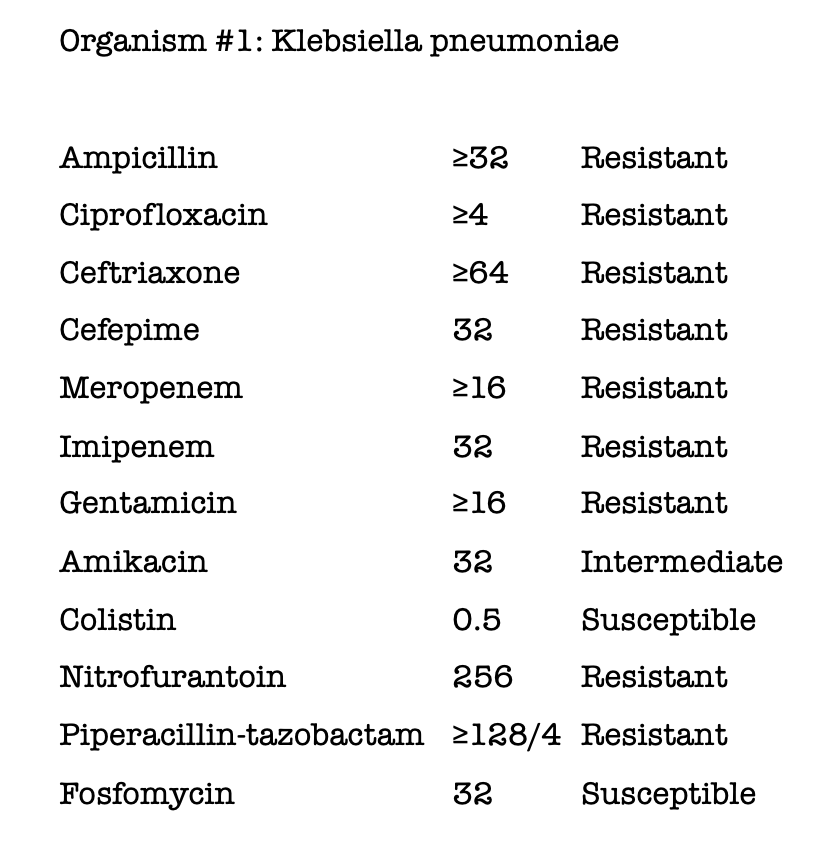 CRE (Carbapenem resistant enterobacteriaceae) 확인 → colistin 선택