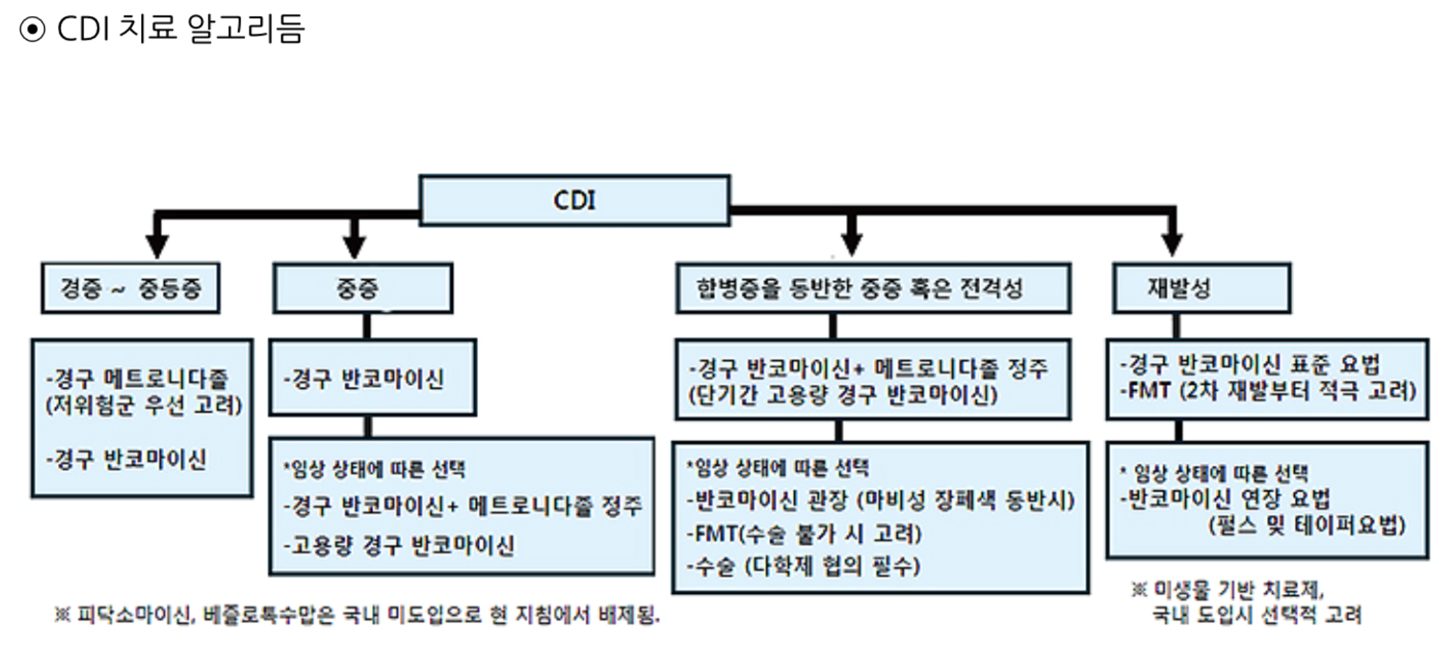 [1] 2024 대한장연구학회 클로스트리디오이데스 디피실레 감염 임상진료지침, pg.5 (Fig 2), pg.9-10