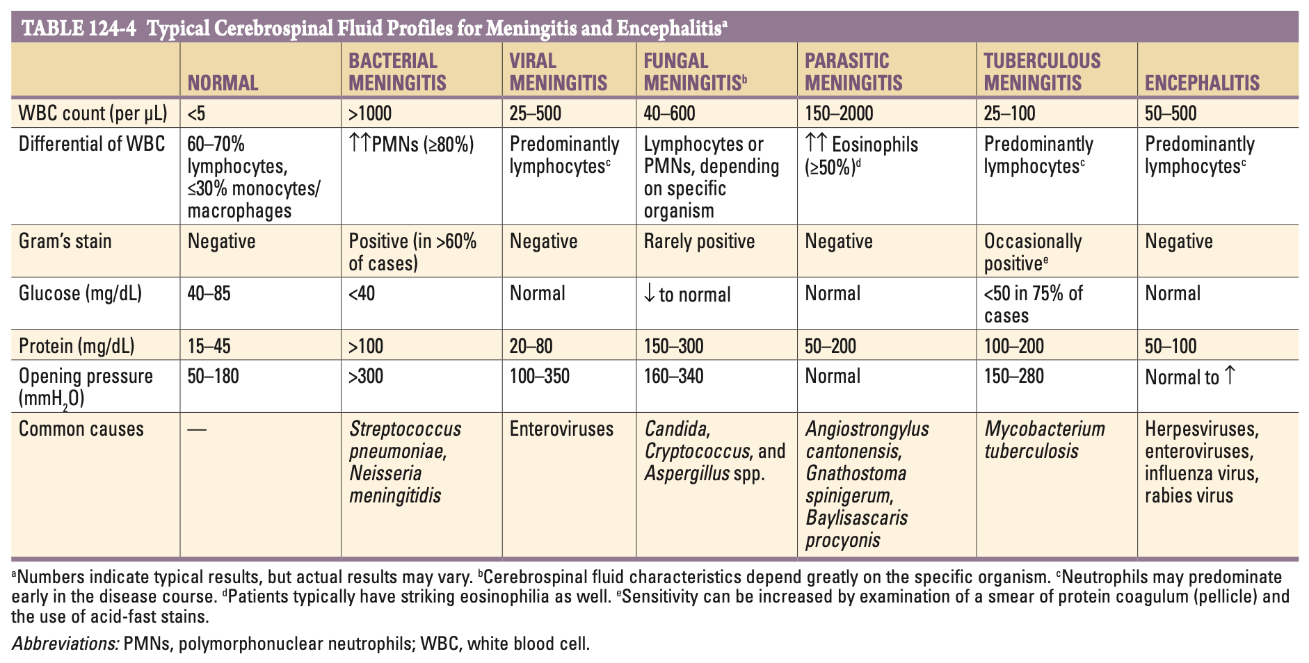 뇌척수액(CSF) 소견 (Table 124-4)
