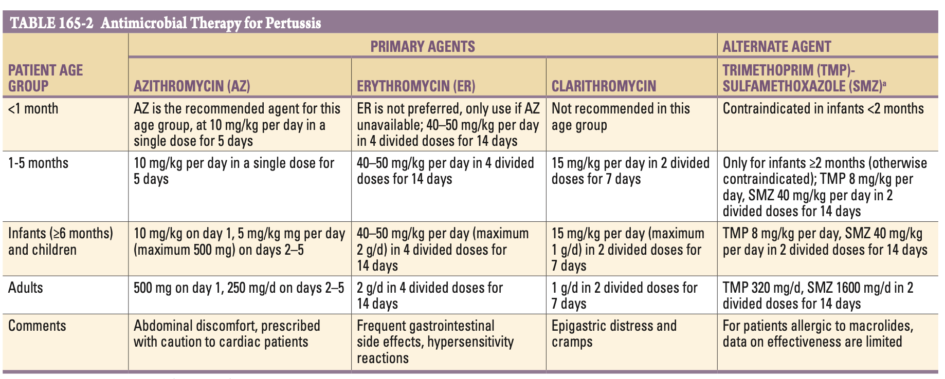 대체 약제: Trimethoprim-sulfamethoxazole (TMP-SMX) (Macrolide 금기/내성 시, 2개월 이상 소아에서 투여)