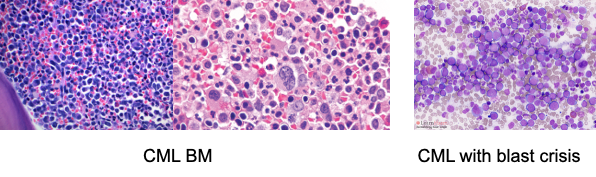 만성기 (대부분 여기에 해당): 말초혈액 또는 골수 내 아세포(Blasts) < 10%