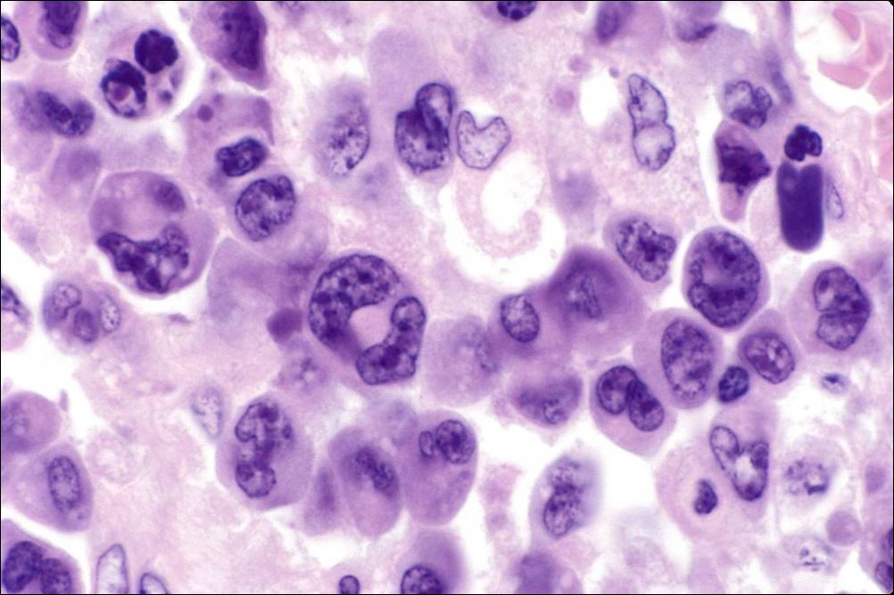 병리 소견: 말굽모양핵 (Horseshoe shaped nucleus)