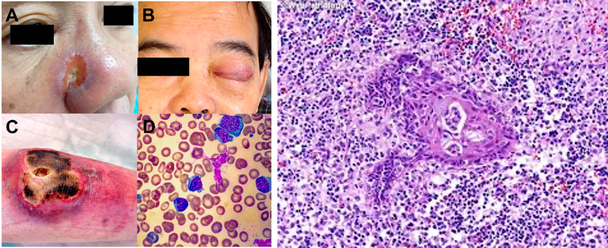 임상양상: 순환 종양세포 및 골수 침범, 고칼슘혈증, Lytic bone lesion, 림프절병증, 간비장비대, 피부병변, 기회감염