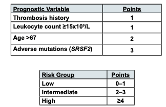 세포감소요법 적응증: 고위험군, 사혈 불내성, 진행성/유증상 비장비대, 심한 전신 증상