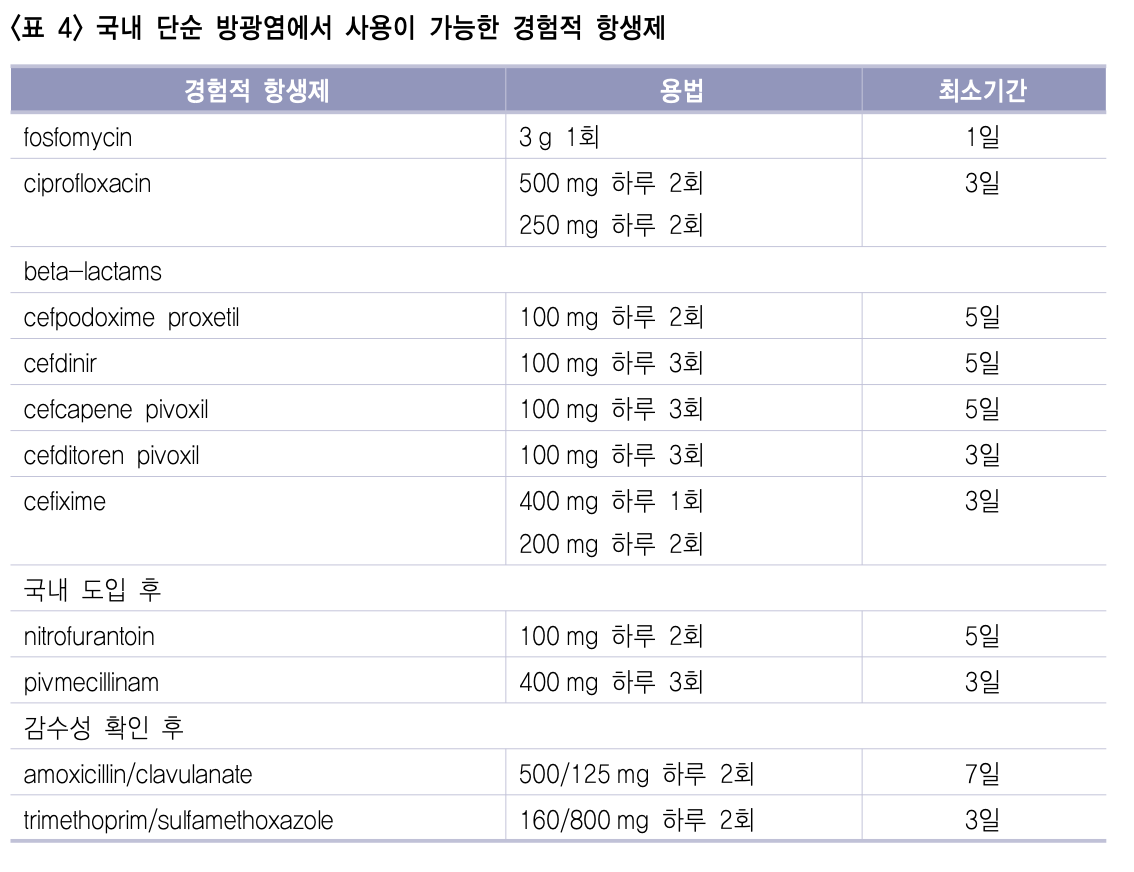 [1] 2018 요로감염 항생제 사용지침, pg.7-15 (Table 3, 4; Figure 1)