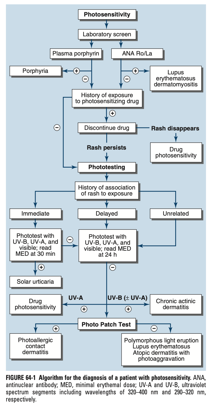 [1] Harrison 22e, Chapter 60 (Eczema, Psoriasis...), Chapter 64 (Photosensitivity)
