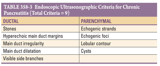 CT(calcification, ductal dilatation, Atrophic pancreas)