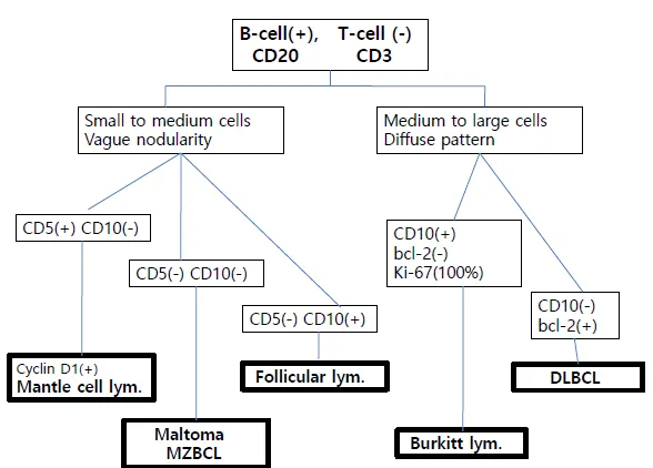 모든 림프종은 '호지킨'과 '비호지킨'으로 먼저 구분한다.