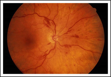 안저 검사: “sausage link” retinal venous engorgement, papilledema, exudate, hemorrhage