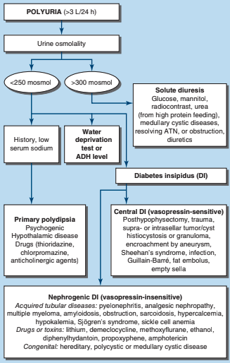 원인: Glucose (당뇨) , Mannitol, 조영제, Urea (고단백 식이) , ATN 회복기, 폐쇄 후 이뇨