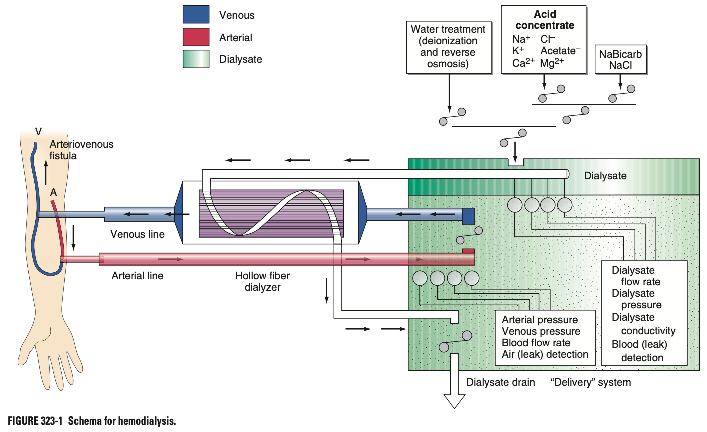 Hollow fiber dialyzer (중공사형 투석기): Biocompatible synthetic membrane 사용 (Polysulfone 등)